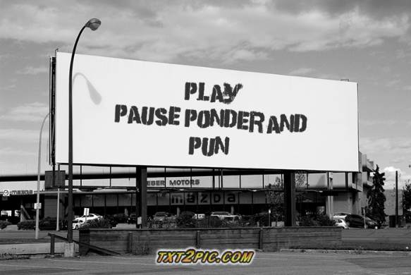 Hello and welcome to that internationally acclaimed (or at least on billboards in New Jersey) interwebs caption contest Pause Ponder and Pun! That's right. I supply the picture and you supply the puns. And we had plenty of punny players this week, all with their own view of just what the heck might be going on in our picture.